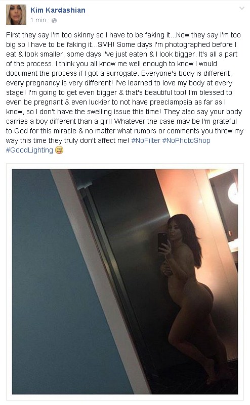 Mesa duket Kim Kardashian e mendon vërtet të nevojshme të postojë një foto nudo për t'i treguar gjithë botës që nuk është shëndoshur aq shumë gjatë shtatzënisë së dytë.
