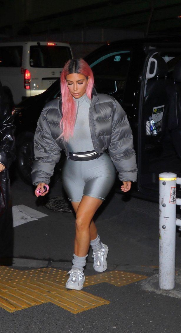 Ajo shfaqet me flokë roz , e veshur me formë (bluzë dhe një palë pantallona të shkurtra) bicikli, ngjyrë argjendi të hapur. Së bashku me xhaketën e fryrë, ngjyrë gri, Kim eksperimenton me një stil futurist, si e dalë prej ndonjë filmi fantastiko – shkencor.
