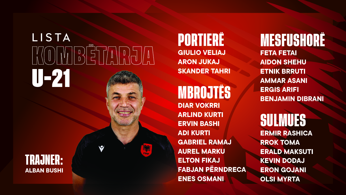 Lista e Kombëtares U-21 dhe trajneri Alban Bushi