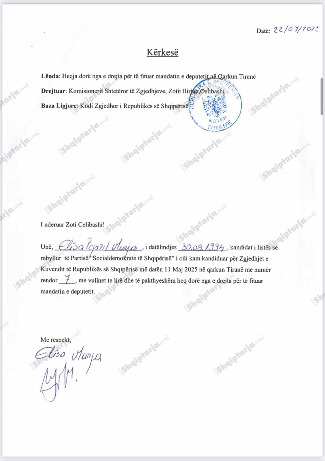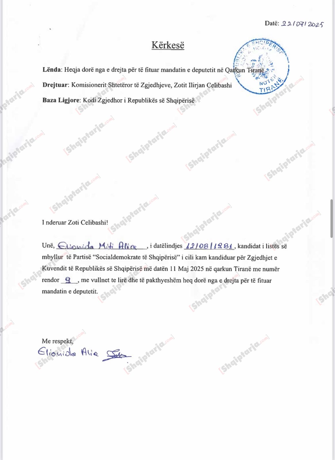 Lapaj ngel jashtë Kuvendit, KQZ ia jep mandatin kushërirës së tij, Kleana Xhuveli! Doshi djeg listën e mbyllur! Certifikohet rezultati për Tiranën