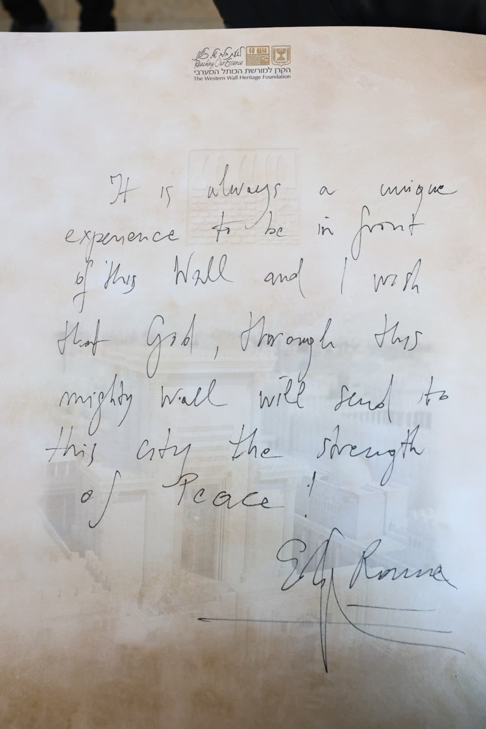 Rama ka lënë gjithashtu dhe një shënim ku shkruan: Është gjithmonë një përvojë unike të jesh përpara këtij Muri dhe uroj që Zoti, përmes këtij muri të fuqishëm, t'i dërgojë këtij qyteti forcën e Paqes!