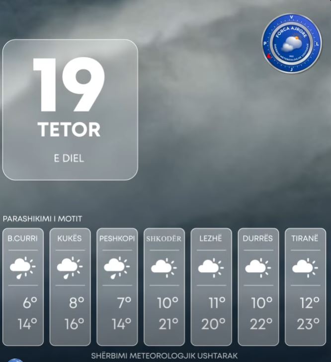 Moti parashikohet i kthjellët e vranësira të pakta kalimtare përgjatë ultësirës perëndimore ndërsa në relievet malore në lindje mot me kthjellime e alternime vranësirash mesatare dhe hera-herës deri të dendura.