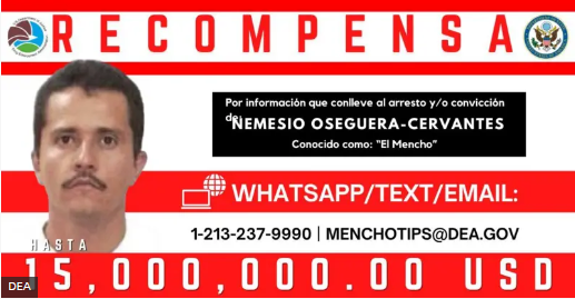 Pas arrestimit të fundit të Joaquín “El Chapo” Guzmán në vitin 2016, “El Mencho” u konsiderua “kapoja” i ri. Që prej asaj kohe ishte arratisur dhe ishte njeriu më i kërkuar si në Meksikë, ashtu edhe në SHBA. Për kokën e tij ishte vënë një shpërblim prej 30 milionë pesos në Meksikë dhe 15 milionë dollarë në SHBA.
