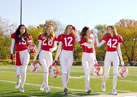 Modelet shihen në fushën e futbollit të veshura me kostumet kombëtare bardhë e kuq dhe kapelet në kokë të cilat më pas i heqin duke dhënë mesazhin, “Mos e hidh topin. Nuk ka Shën Valentin pa Victoria Secret”.