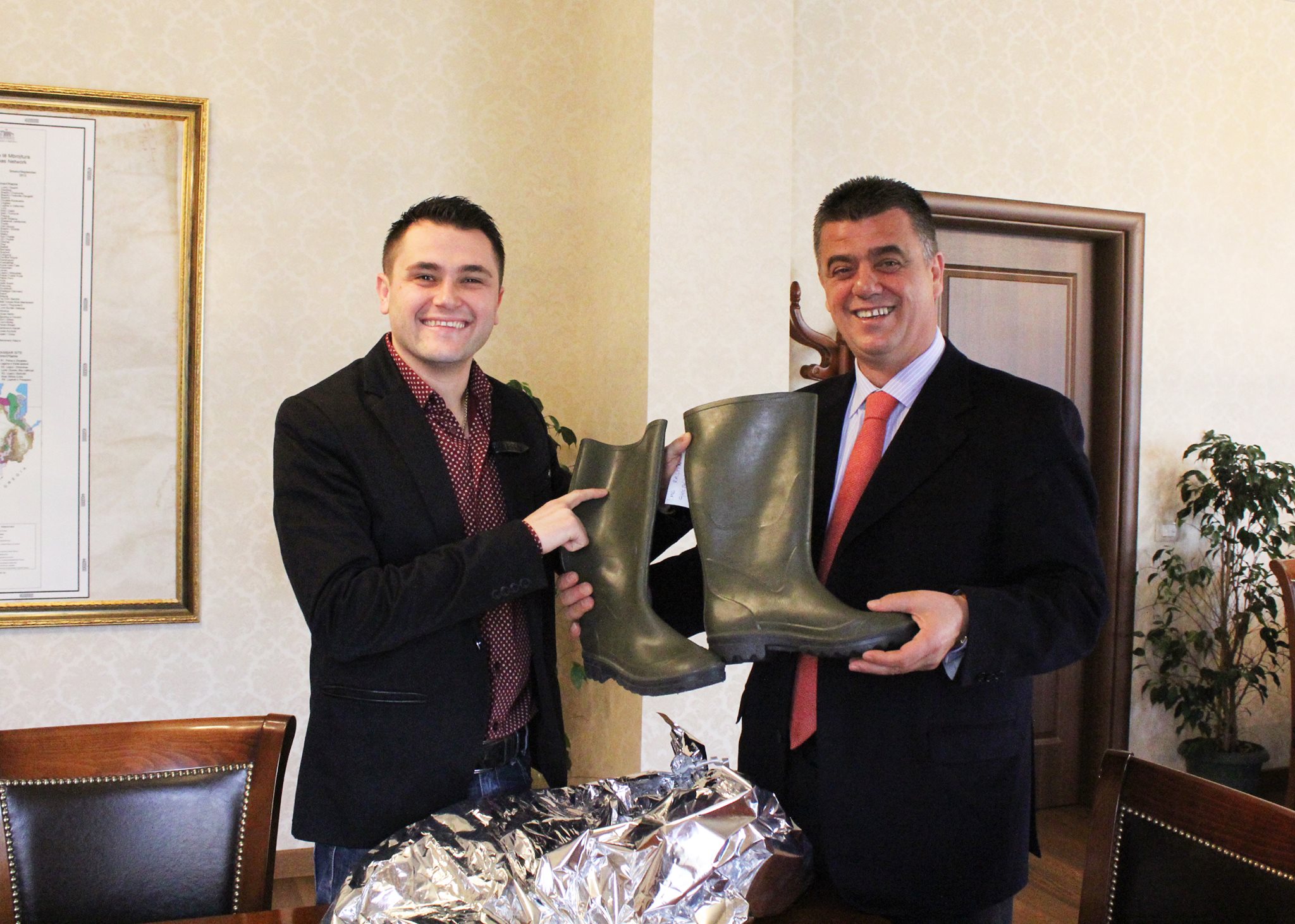 Aktori i njohur i Portokallisë, Besart Kallaku i ka dhuruar ditën e djeshme një palë çizme llastiku ministrit të Mjedisit, Lefter Koka.