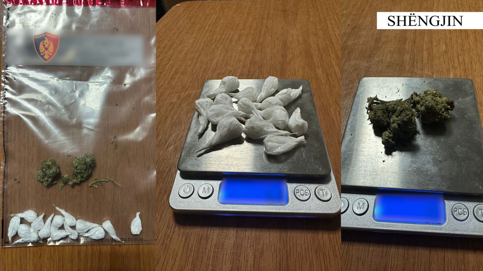 Gjatë kontrollit në automjet u gjet dhe u sekuestrua lëndë e dyshuar narkotike kokainë dhe kanabis, si dhe një thikë.