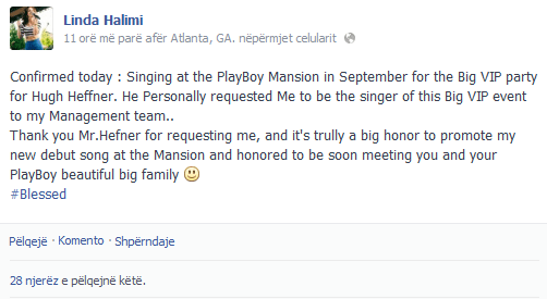 Në postimin që ka nxjerrë Linda në rrjetin social Facebook bën të ditur se ka qenë bosi i njohur i kësaj reviste të famshme Hugh Heffner, i cili ka kërkuar që linda të performojë atje.