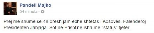"Prej më shumë se 48 orësh jam edhe shtetas i Kosovës. Falënderoj Presidenten Jahjaga. Sot në Prishtinë isha me “status” tjetër", ka shkruar sot Majko në Facebook.