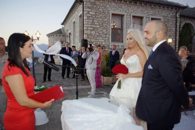 Ka qenë vetë Kryebashkiakja e Sarandës, Florjana Koka, e cila ka kryer edhe celebrimin e dy këngëtarëve duke i lidhur në martesë gjatë ceremonisë së dasmës.