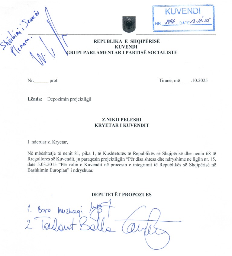 Mazhoranca parlamentare ka propozuar disa ndryshime në ligjin për rolin e Kuvendit në Procesin e Integrimit Europian të Shqipërisë.
