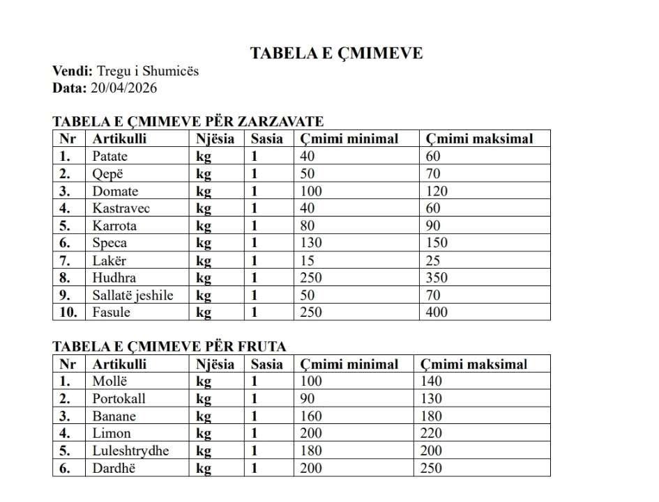 Një grup pune po ndjek nga afër dhe po verifikon në terren situatën e çmimeve, si në tregun e shumicës, ashtu edhe në pikat e shitjes me pakicë.