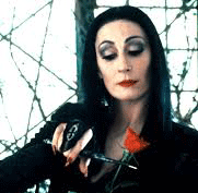 Flokët e gjata të zeza, baluket dhe veshja e errët të sjell ndërmend gjithashtu një personazh të njohur të filmave fiction, siç është “Morticia Addams” në filmin “The Addams Family”.