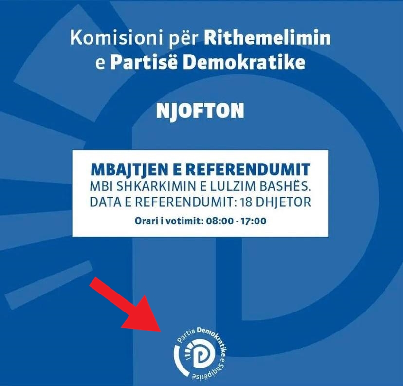 Njoftohet se referendumi do të zhvillohet më 18 dhjetor, ditën kur do ta mbahet Kuvendi i PD, ndërsa orari i votimit do të jetë nga 08:00 deri në orën 17:00.