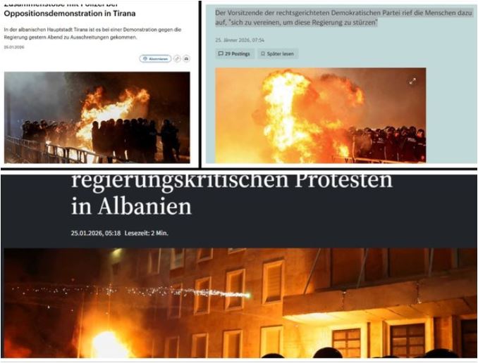 Ndërsa DerStandard shkruan se Kreu i Partisë Demokratike Sali Berisha u bëri thirrje njerëzve të bashkohen për të rrëzuar qeverinë.
