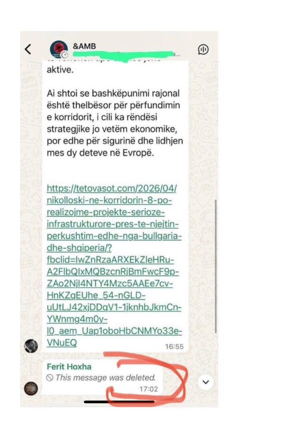 Në postimin e dytë, i njejti mesazh që sipas Këlliçit është fshirë nga Ministri, mban çuditërisht orën 17.02. Pra i njejti mesazh, në dy foto, i dërguar në dy orare të ndryshme.