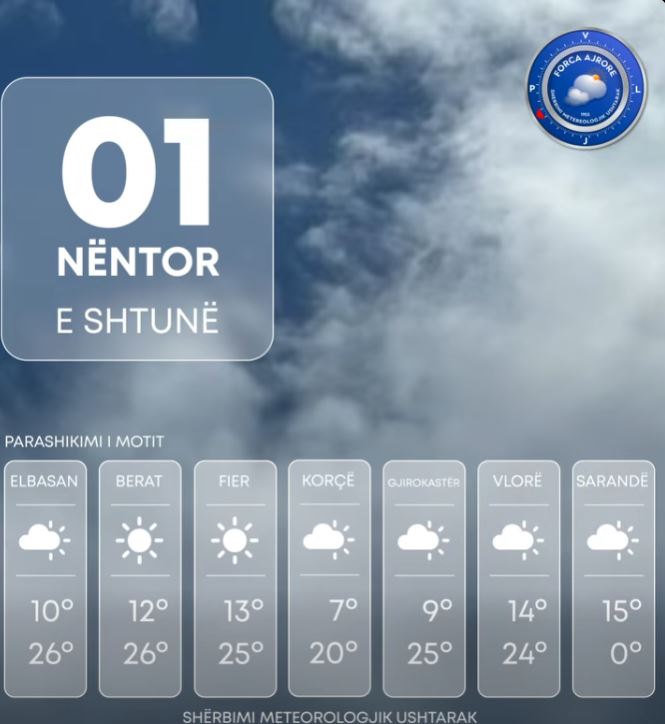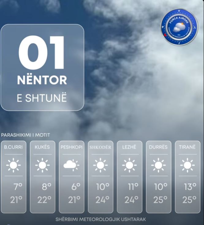 Moti parashikohet i kthjellët në të gjithë territorin pa përjashtuar vranësira të pakta kalimtare në pjesën e parë të ditës.