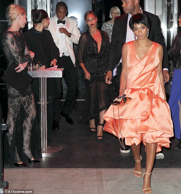 Ngjarja është filmuar nga kamerat e sigurimit, ku Jay-Z kishte vënë një dorë në faqen e tij, ndërsa Solange po largohej para tyre sapo kanë dalë nga ashensori.