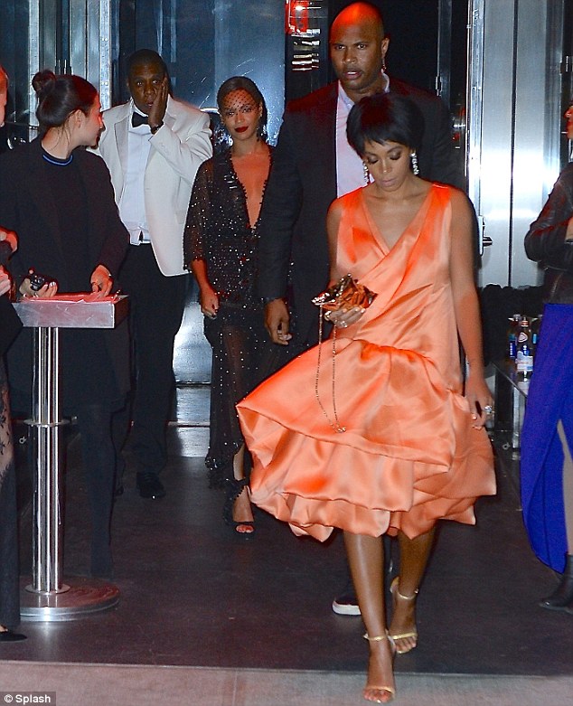 Ngjarja është filmuar nga kamerat e sigurimit, ku Jay-Z kishte vënë një dorë në faqen e tij, ndërsa Solange po largohej para tyre sapo kanë dalë nga ashensori.