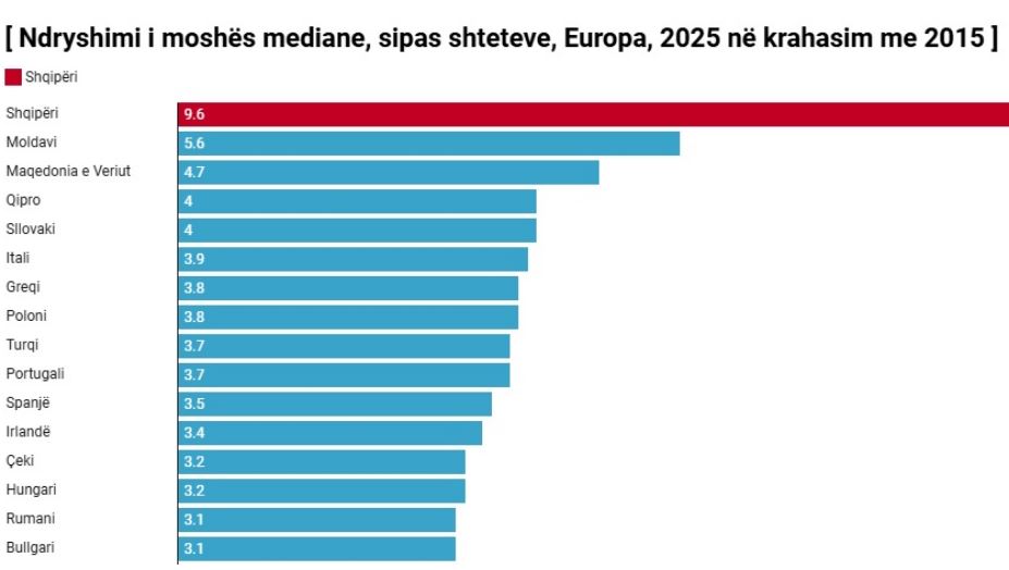 Teksa Europës iu deshën disa dekada të kalojë në një etapë plakjeje të popullsisë, Shqipëria e ka pësuar këtë transformim brenda vetëm një dekade, pasi nga viti 2015 në 2025 mosha mediane në vendin tonë u rrit me 9.6 vite, ritmi më i lartë në kontinent, teksa mesatarja europiane këtë periudhe ishte 2.1 vite.