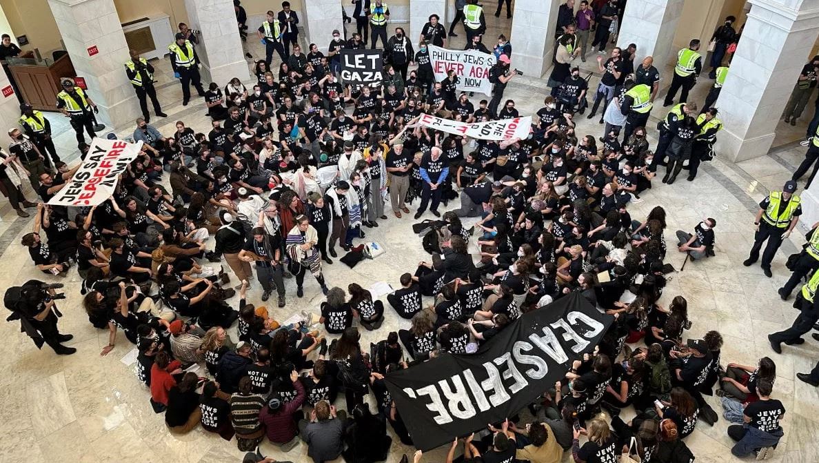 500 njerëz, duke përfshirë rreth njëzet rabinë, u arrestuan në Kapitol në SHBA-së ndërsa protestonin kundër luftës, duke bërë thirrje për një armëpushim të menjëhershëm në Gaza.