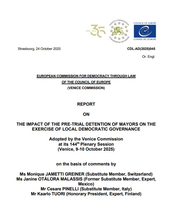 Organi më prestigjioz evropian sa i përket të drejtës kushtetuese dhe lirive të njeriut, thotë se shkarkimi i të zgjedhurve vendorë, sidomos kur bëhet nga pushteti qendror për shkak të ndalimit apo paraburgimit të tyre prek thelbin e autonomisë vendore dhe shkel parimet e Vetëqeverisjes Vendore.”