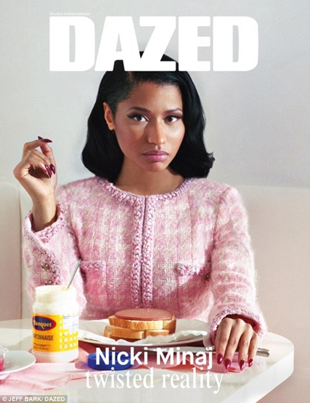 Nicki Minaj ka pozuar për revistën Dazed. Nga e zhveshur në një damë elegante dhe pranë një tavoline me ushqime.