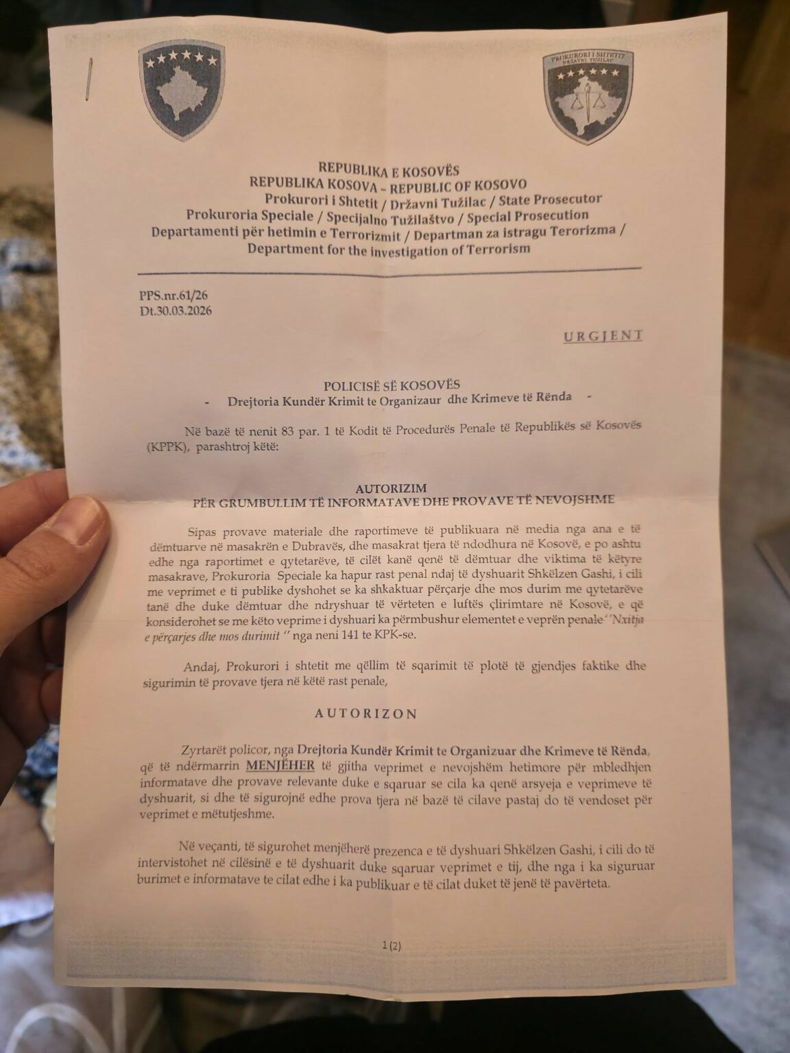 Po ashtu, pritet të merren në pyetje dëshmitarë dhe persona të dëmtuar, për të sqaruar plotësisht rrethanat e rastit.