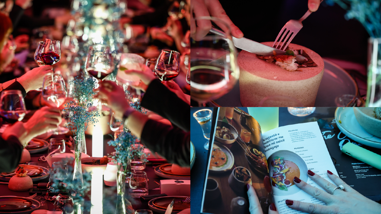 Mbrëmja u zhvillua në një atmosferë bisedash dhe ndërveprimi. Të ftuarit u ulën rreth tavolinës për një përvojë të përbashkët, e shoqëruar me diskutime të drejtuara nga “heads of the table”, duke e kthyer darkën në një shkëmbim idesh mbi gastronominë, kreativitetin dhe eksplorimin e shqisave.