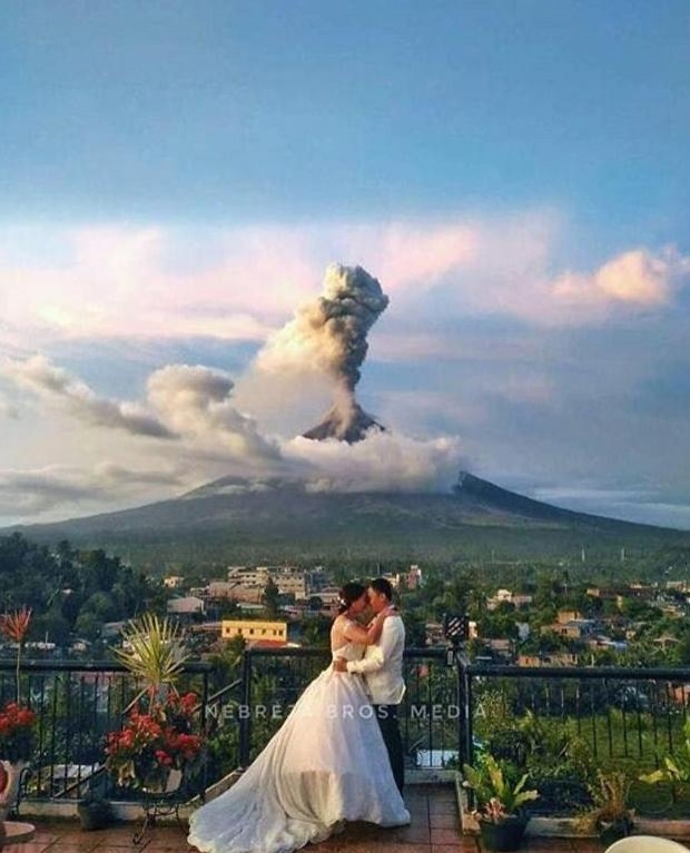 Në një kohë kur shumë njerëz janë larguar nga rreziku i vullkanit çifti Arlo Dela Cruz dhe Maica Nicerio-Dela Cruzka zgjodhën që ta shfrytëzojë këtë mundësi pavarësisht rrezikut. Fotot e tyre kanë bërë xhiro në të gjithë mediat e botës. Vërtet është një rrezik por momentet e dasmës kanë për të mbetur të veçanta në kujtesën e çdo njeriu.