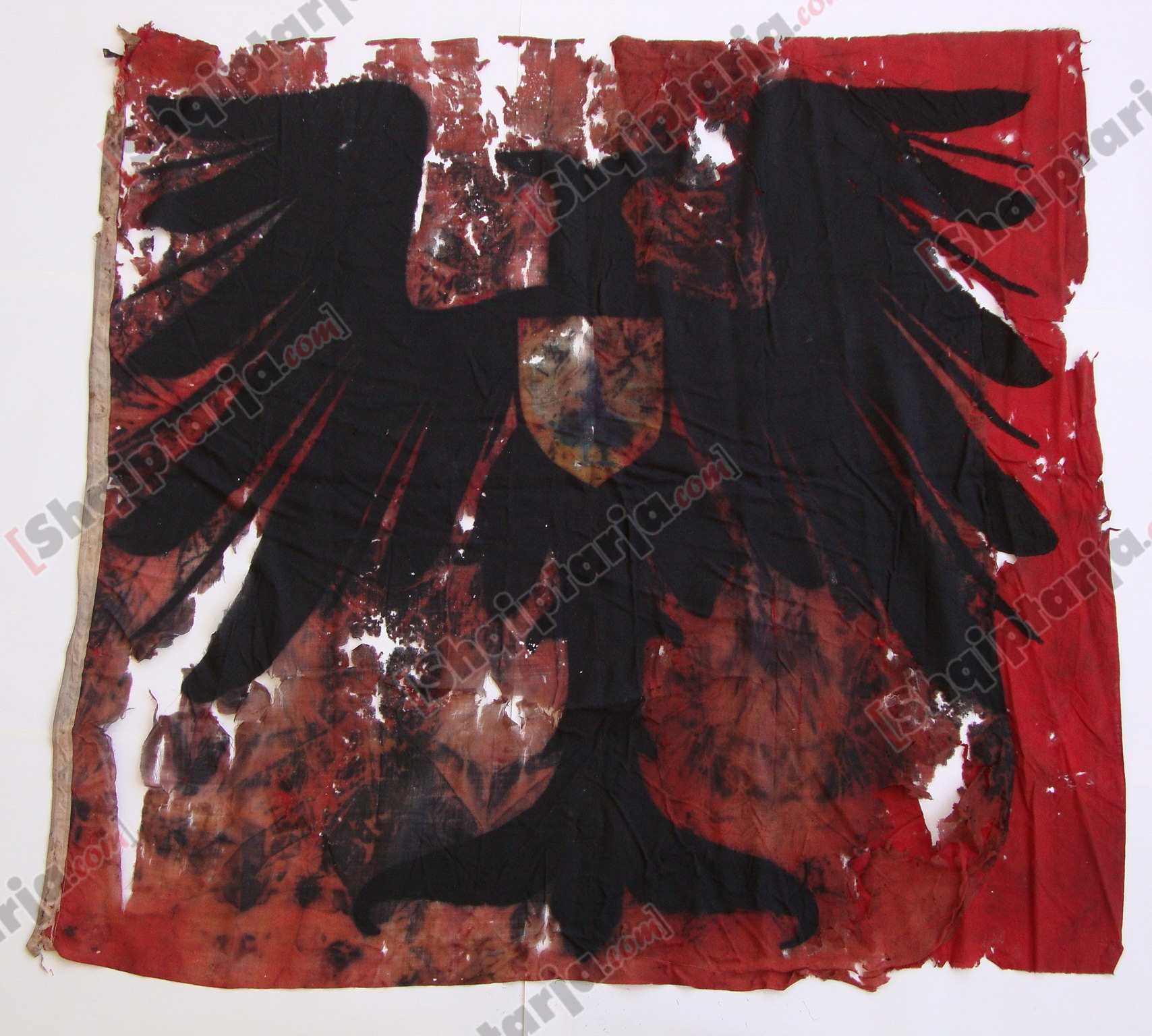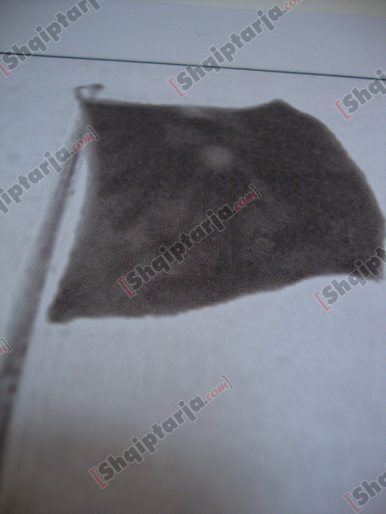 1 flamur të Shqipërijës që pat gjeturë mbë 1916 të harruarë ndë një zgëq të pallatit të Prenc Vijditë ndë Durrësë.