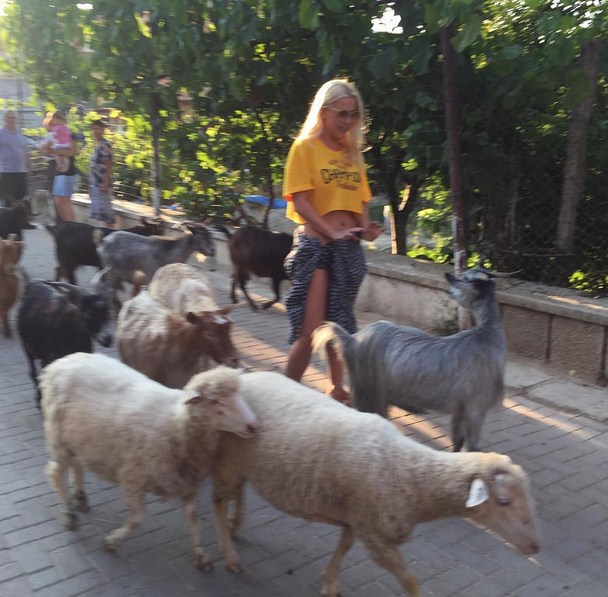 Duke marrë pozën e një çobaneshe të denjë, Olta më pas i është “kundërvënë” një cjapi, për të cilin shkruan në “Facebook”;