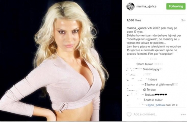 Përmes një fotoje në instagram ajo ka postuar foto kur ishte 15 dhe 17 vjeçe me mbishkrimin “Viti 2007, pak muaj pa bërë 17 vjeç. S’kisha komentuar ndonjëherë lajmet për "ndërhyrje kirurgjikale", po mendoj se u teprua me akuza të paqena... Jam bërë pjese e televizionit në moshën 15-vjeçare e normale që kam qenë në proces formimi. Flm për "skeptikët’’, është ky postimi i Marinës në instagram.