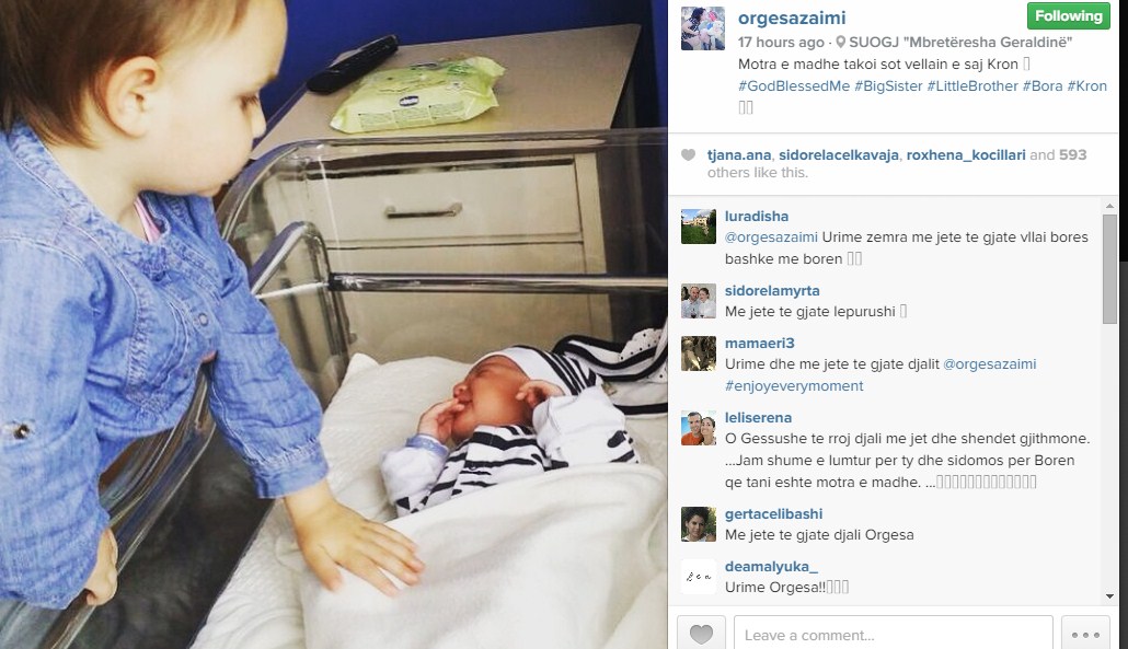 Ka qenë vetë Zaimi e cila nëpërmjet një foto të postuar në profilin e saj në Instagram ka treguar se ka sjellë në jetë vogëlushin e saj.