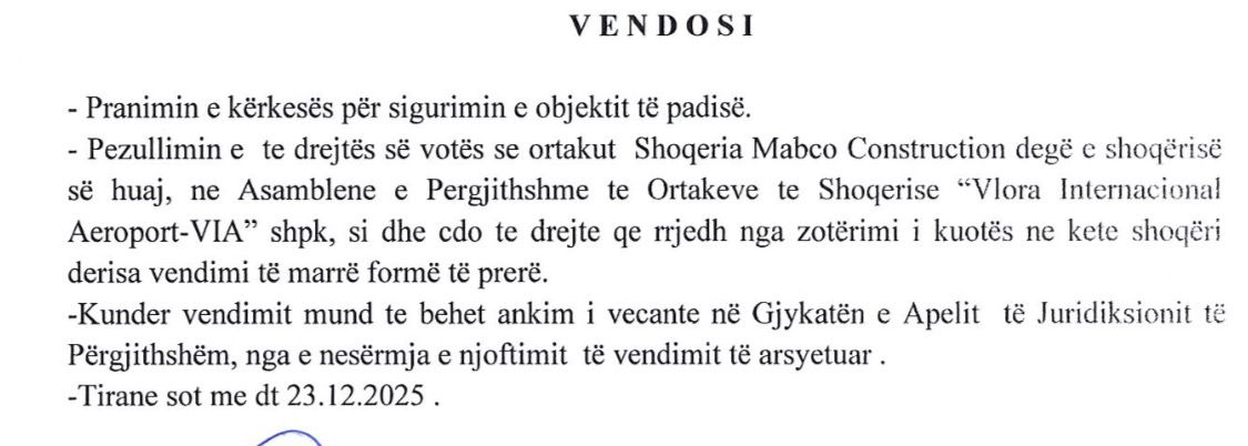 Ndërsa “Mabco” e Behgjet Pacollit dhe “2A Group” e Valon Ademit, dy ortakëve të shoqërisë VIA, e cila ka marrë përsipër ndërtimin e aeroportit të Vlorës, vijojnë të jenë të mbërthyer në beteja gjyqësore për çështjen e kuotave të aksioneve, Gjykata e Apelit vendosi këtë të enjte t’i njohë të drejtën e administrimit ortakut “2A Group”, pas një procesi të nxitur nga një marrëveshje kredie 100 milion euroshe që “Mabco” kishte firmosur me një fond investimesh guackë, “Delphos”.
