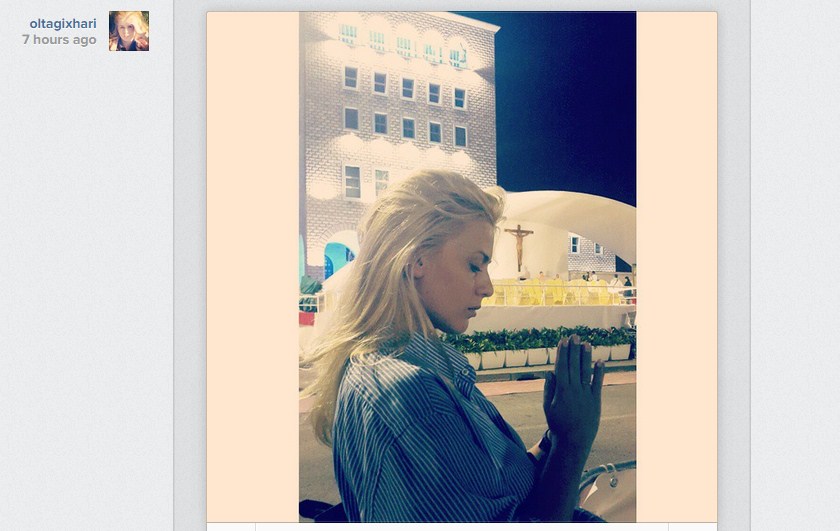 Aktorja dhe prezantuesja Olta Gixhari ka publikuar në profilin e saj në Instagram një foto ku shfaqet duke u lutur tek Sheshi Nënë Tereza vetëm disa orë përpara mbërritjes së atit të shenjtë.