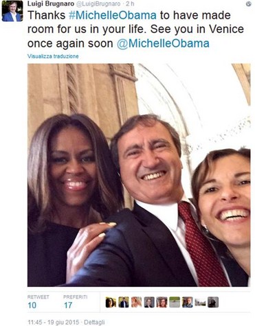 Gjatë vizitës në Venecia ajo nuk ka harruar të bëjë edhe një foto “selfie” të saj me kryetarin e Bashkisë së Venecias, Luigi Brugnaro.
