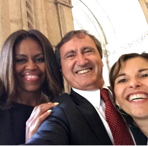 Gjatë vizitës në Venecia ajo nuk ka harruar të bëjë edhe një foto “selfie” të saj me kryetarin e Bashkisë së Venecias, Luigi Brugnaro.