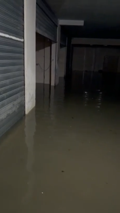 Në një parkim nëntokësor të një godine, uji ka depërtuar dukshëm dhe vazhdon të ketë prurje. Në pjesën e jashtme, situata vijon e njëjtë si në shumë rrugë të qytetit.
