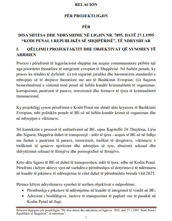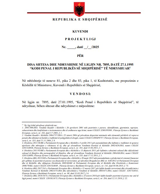 Ndryshimet në Kodin Penal, parashikojnë disa ndërhyrje me përkufizime të reja që i shtohen veprave penale ekzistuese.