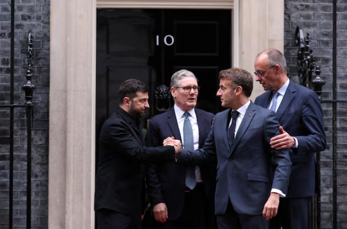 Volodymyr Zelensky, Keir Starmer, Emmanuel Macron dhe Friedrich Merz