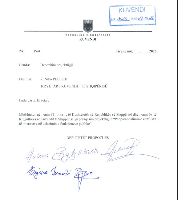 Komisioni i ligjeve, të punojnë për një variant tjetër final të këtij ligji. Drafti i depozituar në Kuvend në tetor të këtij viti, është punuar nga ILDKPI, si organi përgjegjës dhe u depozituar nga dy deputetet socialiste Erjona Ismaili dhe Aulona Bylykbashi. Drafti parashikon se zyrtarët do të zbulohen në konflikt interesi me funksionin që ushtrojnë gjobiten në nga 200 mijë lekë deri në 500 mijë lekë.