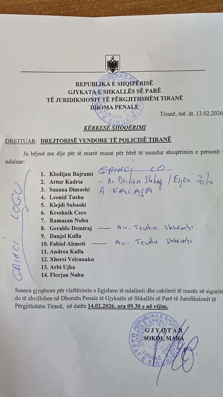 Përballja e 14 të arrestuarve me drejtësinë ishte veçuar nga ajo e 7 të miturve, të cilët dolën para Gjykatës një ditë më parë (13 shkurt), dhe gjyqtari Gentjan Jahjolli caktoi po ashtu masa e detyrim paraqitjes, mes tyre edhe për nipin e gazetarit të “pavarur” Çim Peka, pronarit formal të Syri Tv. Edhe nipi i tij ishte në mesin e 7 të miturve që përfunduan në pranga për goditjen me molotovë, gurë dhe fishekzjarrë ndaj forcave të policisë.
