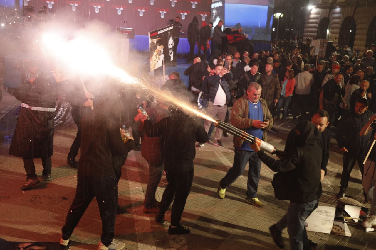 Ai deklaron se pas mbarimit te fjalimit të liderit të opozitës, një grup protestuesish të maskuar kanë hedhur drejt tyre dhe godinës se kryeministrisë ënde piroteknike dhe molotov si dhe sende të forta.