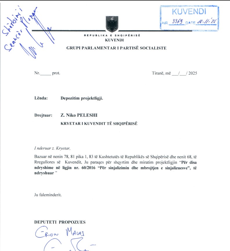 Projektligji i depozituar në Kuvend nga deputeti i PS, Erion Malaj, parashikon ngritjen e një mekanizmi të unifikuar sinjalizimi, nëpërmjet kanaleve të brendshme brenda institucioneve dhe kompanive, apo edhe tek autoritetet kompetente. Institucionet publike dhe subjektet private me më shumë se 50 punonjës detyrohen të krijojnë struktura të posaçme për pranimin, shqyrtimin dhe administrimin e sinjalizimeve.