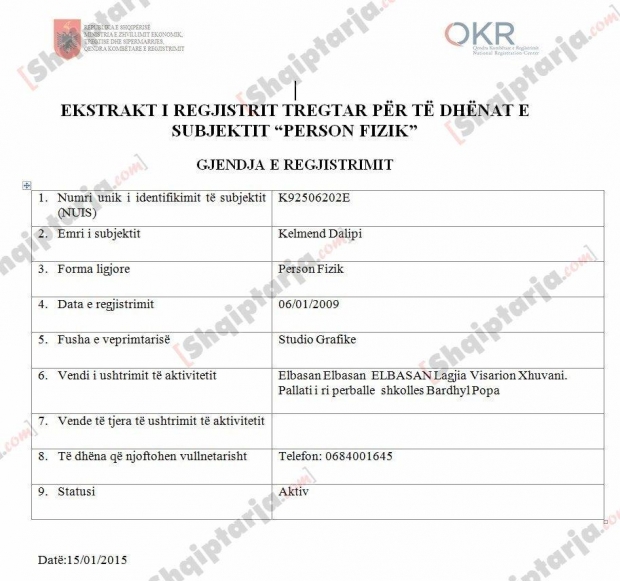 (Në foto: Studio Grafike e regjistruar në emër të të arrestuarit Klemend Dalipi)