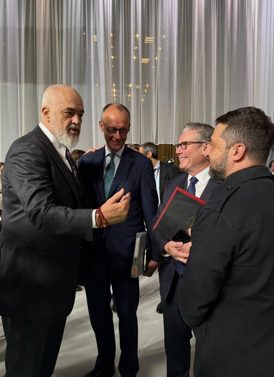 Kryeministri shkruan se është “krenar për Shqipërinë”, teksa në fotot e publikuara shfaqet duke biseduar me liderë të ndryshëm të Evropës, të tillë si Presidenti francez Macron, Ursula von der Leyen, Kryeministrja italiane Giorgia Meloni, Kryeministri grek Kyriakos Mitsotakis, Kancelari gjerman Merz, Presidenti i Ukrainës Zelensky, Kryeministri spanjoll Pedro Sanchez, etj.