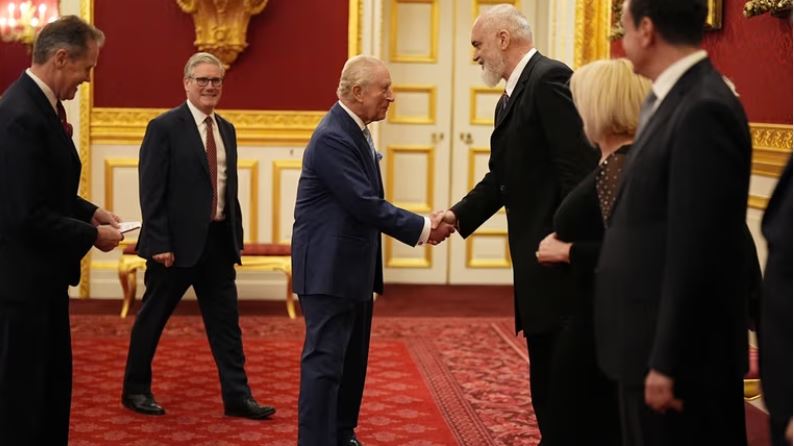 Pritje për udhëheqësit e Ballkanit Perëndimor është organizuar në pallatin St James, ndërsa në fotot e publikuara nga mediat e huaja, dallohet edhe kryeministri Rama teksa i jep dorën mbretit Charles.