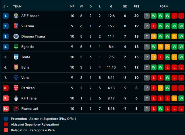 Superliga shqiptare e futbollit është në raundin e 10-të, me të gjitha ndeshjet që nisën me një minutë heshtje në nderim të ish-kryeministrit Fatos Nano i cili u nda nga jeta të premten e kaluar në moshën 73-vjeçare.