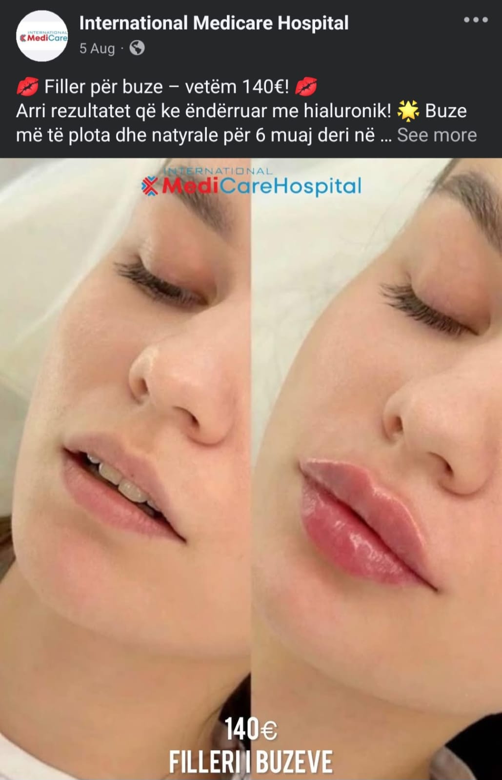 Ndërkohë, klinika reklamonte në rrjetet sociale një sërë shërbimesh që ofronin, duke nisur filleri i buzëve, transplanti i flokëve 980 euro, e shumë ndërhyrje të tjera estetike.