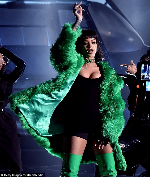 E veshur me të zeza dhe të gjelbër ajo ka kënduar këngën e saj më të re “B**** Better Have My Money” duke elektrizuar të pranishmit si me pamjen ashtu edhe me performancën.
